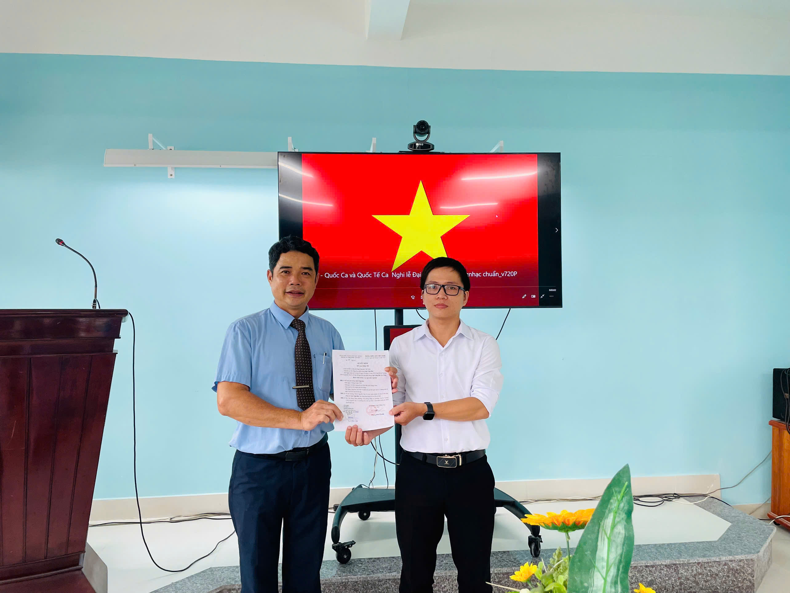 Đồng chí Lê Đình Sơn - BTCB trao quyết định kết nạp Đảng