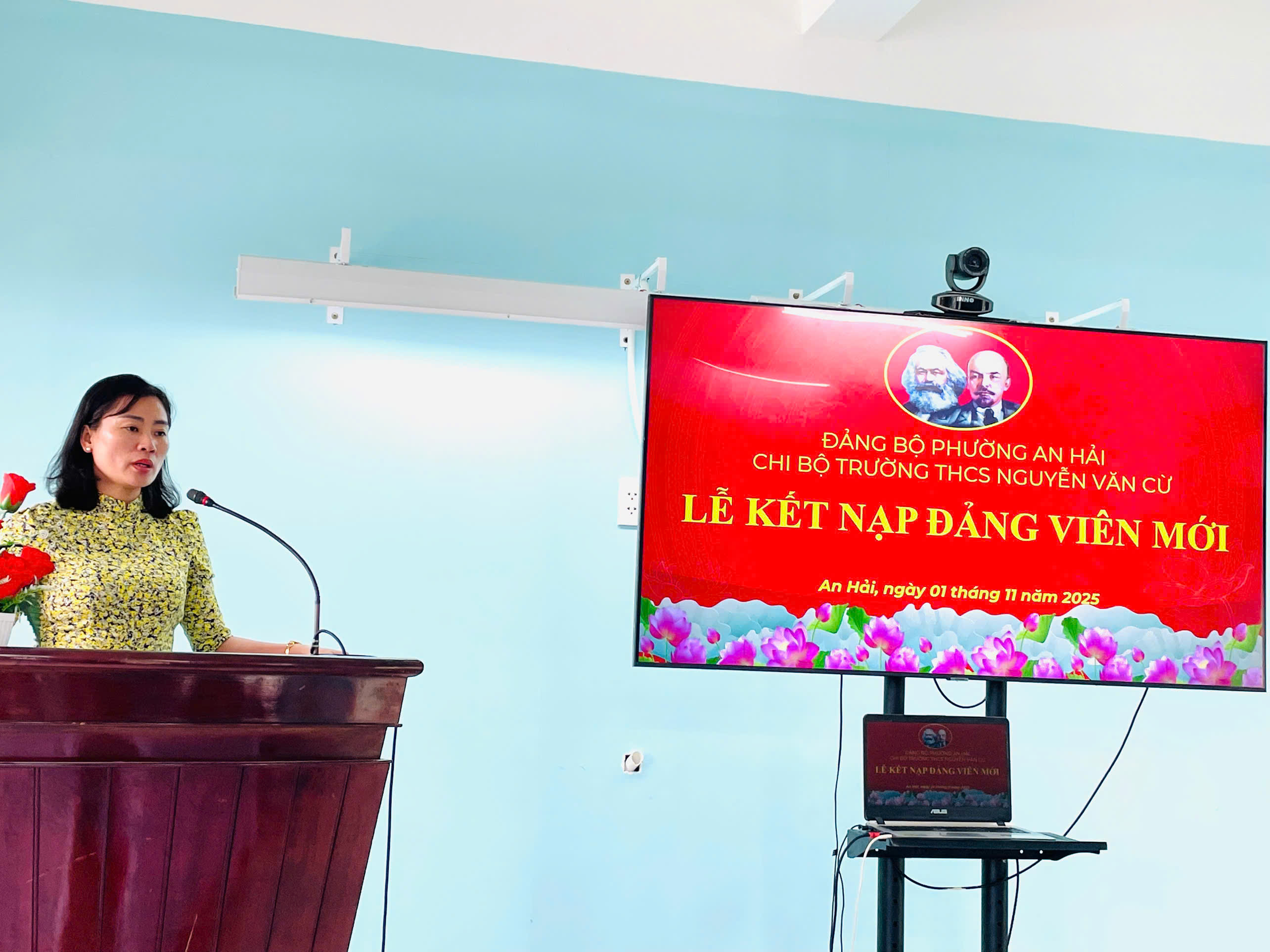 Lễ kết nạp đảng viên mới là vinh dự, đồng thời cũng là dấu mốc quan trọng trong công tác xây dựng, phát triển Đảng của Chi bộ trường THCS Nguyễn Văn Cừ bổ sung lực lượng trẻ, nhiệt huyết, có năng lực góp phần nâng cao chất lượng chính trị nhà trường.
